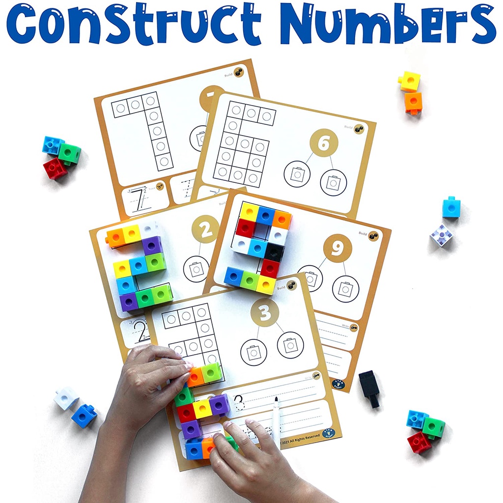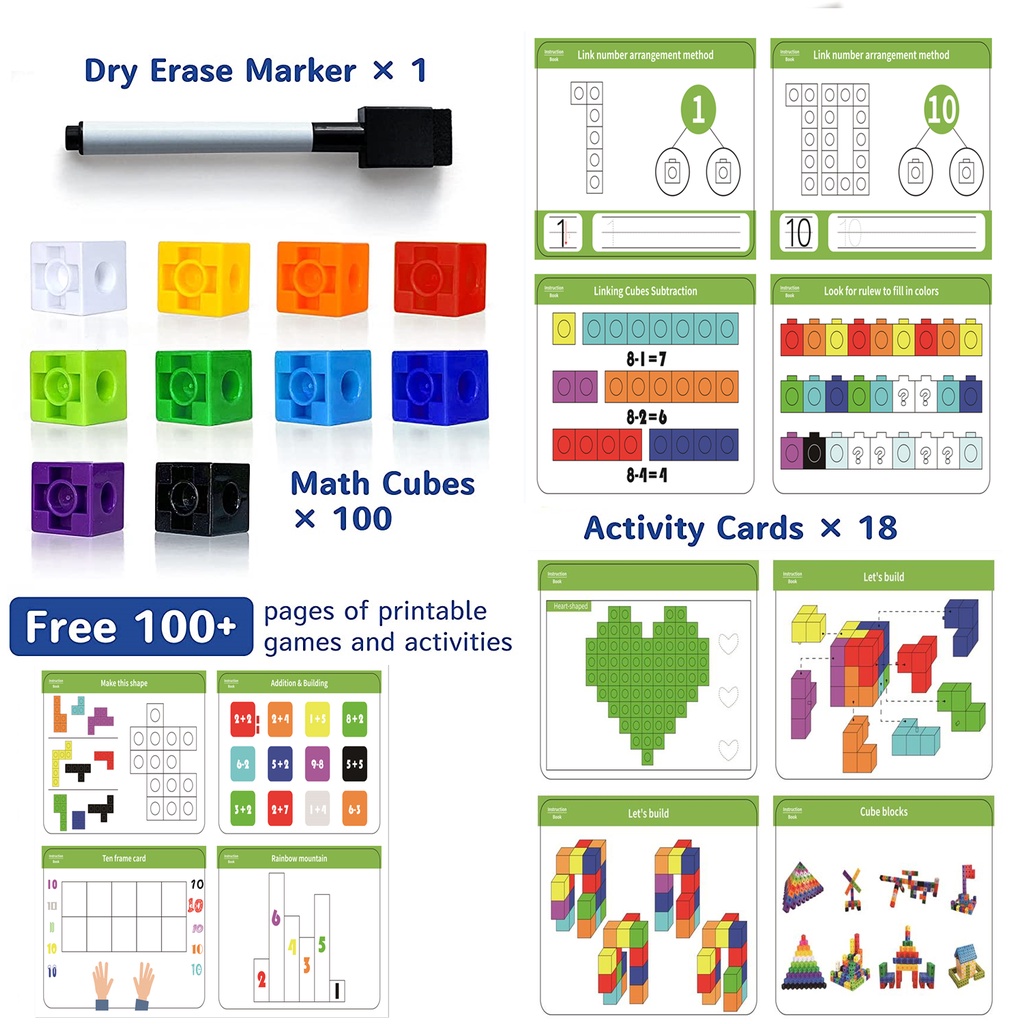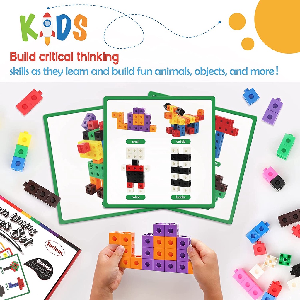 2CM Number Linking Blocks Toys With 18 Pages 36 Sides Activity Cards Math Building Blocks for Kids
