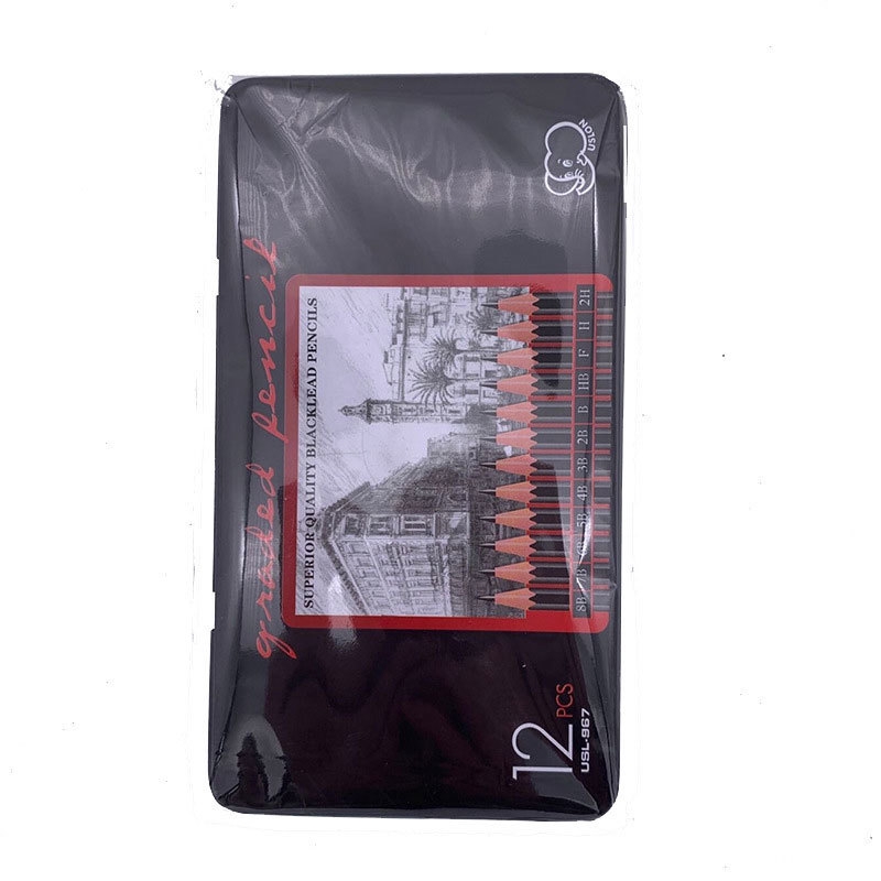 2H-8B 12pcs Graphite pencil set Metal box Professional sketch pencils set Pre-sharpened Art School supplies Stationery