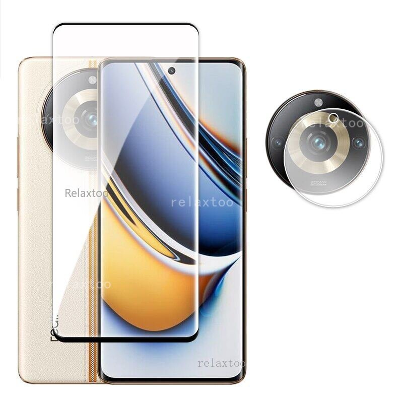 2IN1 Full Cover Tempered Glass For Realme 11 10 Pro Plus Pro+ NFC 11Pro+ 11X 10Pro+ Realem11 5G 4G Phone Front Lens Film Full Curved Screen HD Clear Protect Cover Glass Case Film