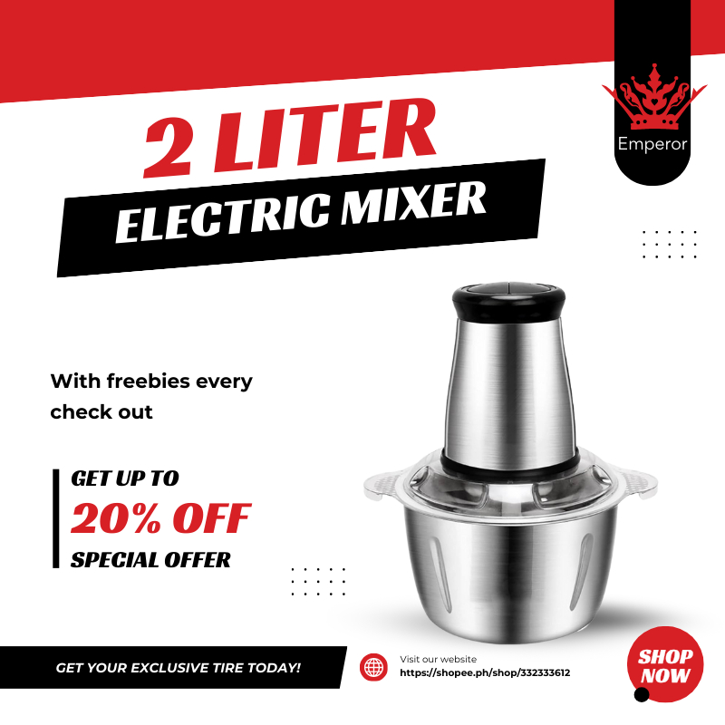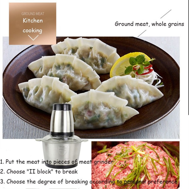 2L Electric Meat Grinder Stainless Steel Chopper and Blender Multifunctional Food Processor