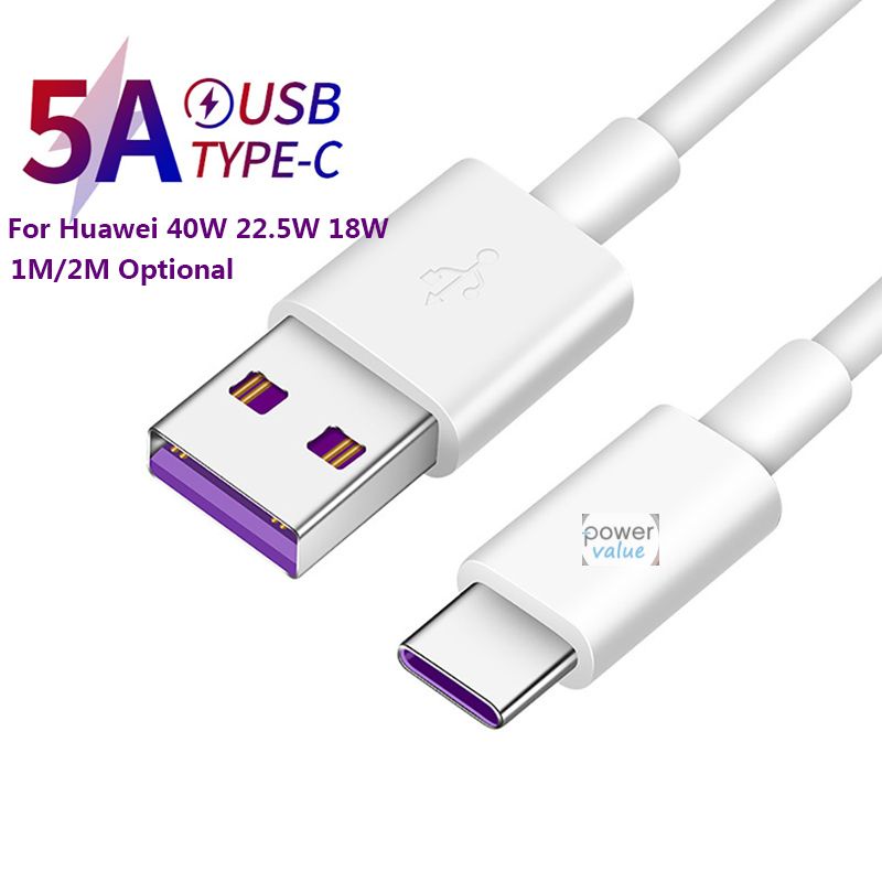 2M 5A 40W Huawei USB Type C Fast Charging Cable Charger Data Cord for Y7a Nova 5T 7i Mate 20 P10 P30