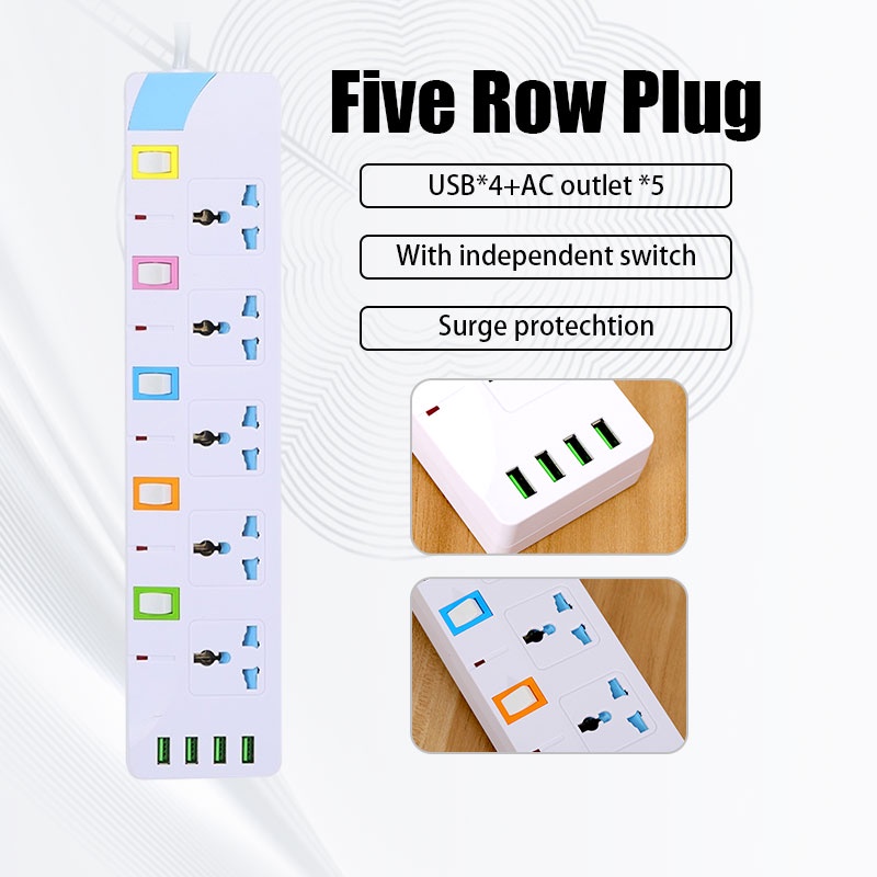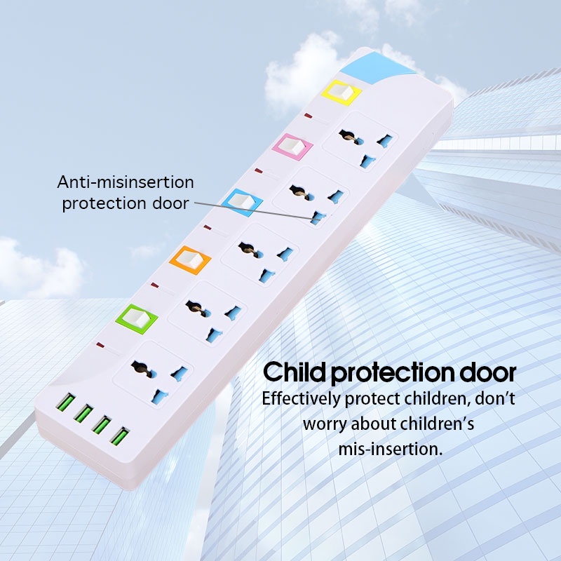 2M/5M Universal Power Socket Extension Power Strip Multi Function Socket With 4 USB 5 Port Sockets