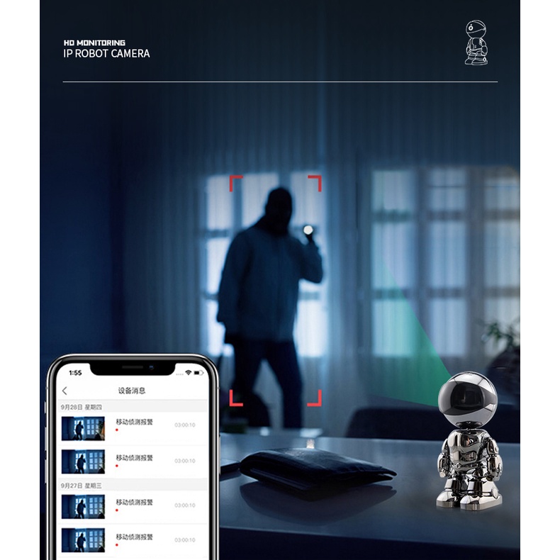 2MP 1080P IP Camera Wireless Home Security Robot Camera Two-way Audio Surveillance Invisible Lens Wifi Night Vision CCTV Camera