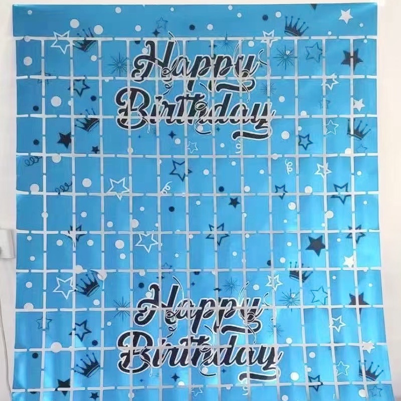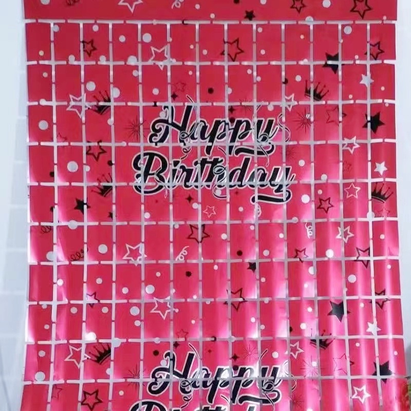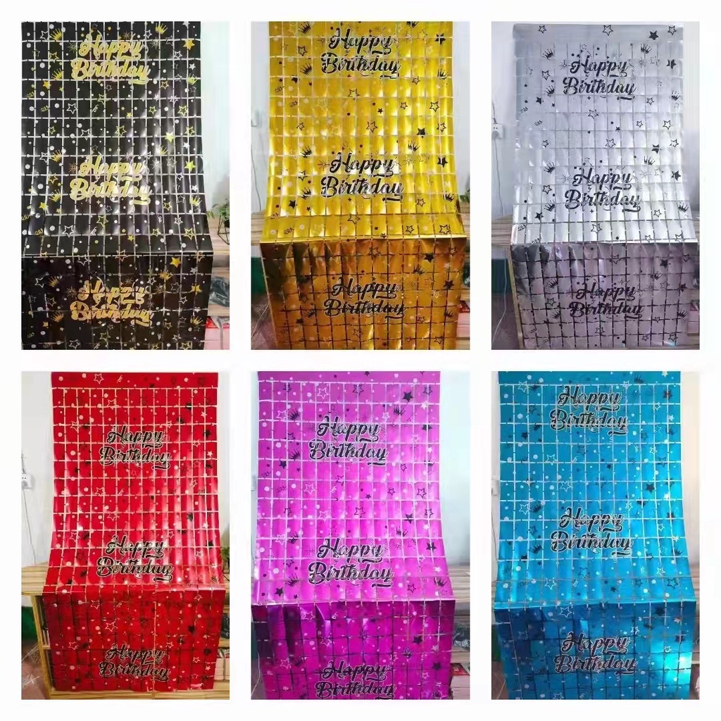 2Meters Happy Birthday Printing Foil Curtain Backdrops Birthday Party Decorations Sequin Wall Backdrop Shimmer Wall Background String Shiny Gold Foil Metallic
