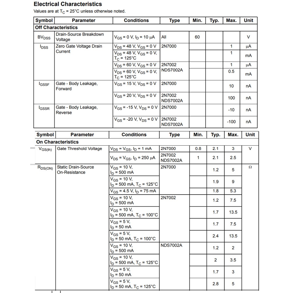 2N7002 transistor SMD SOT-23 surface mount MOSFET N-channel 115 mA 60V