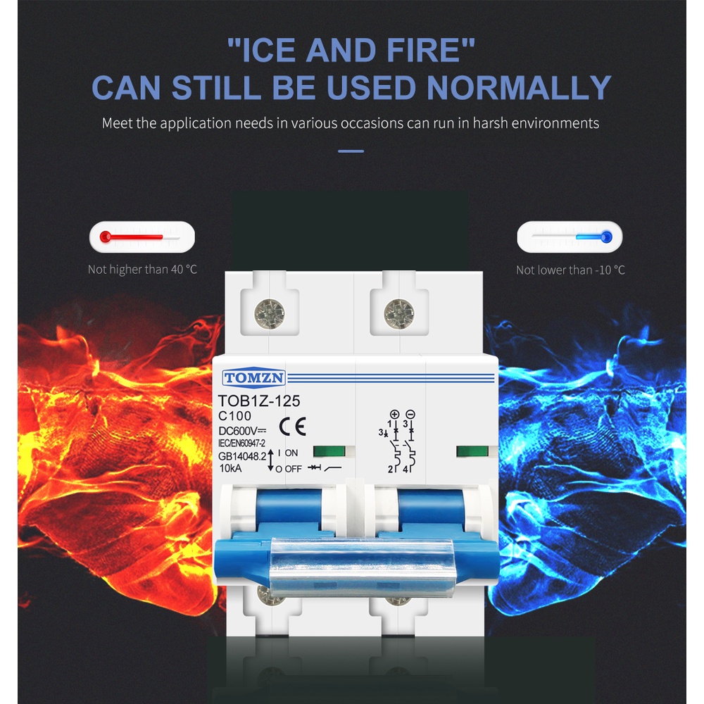 2P 80A 100A 125A DC MCB 600V Circuit breaker FOR PV System C curve MCB Battery Main Switch TOMZN