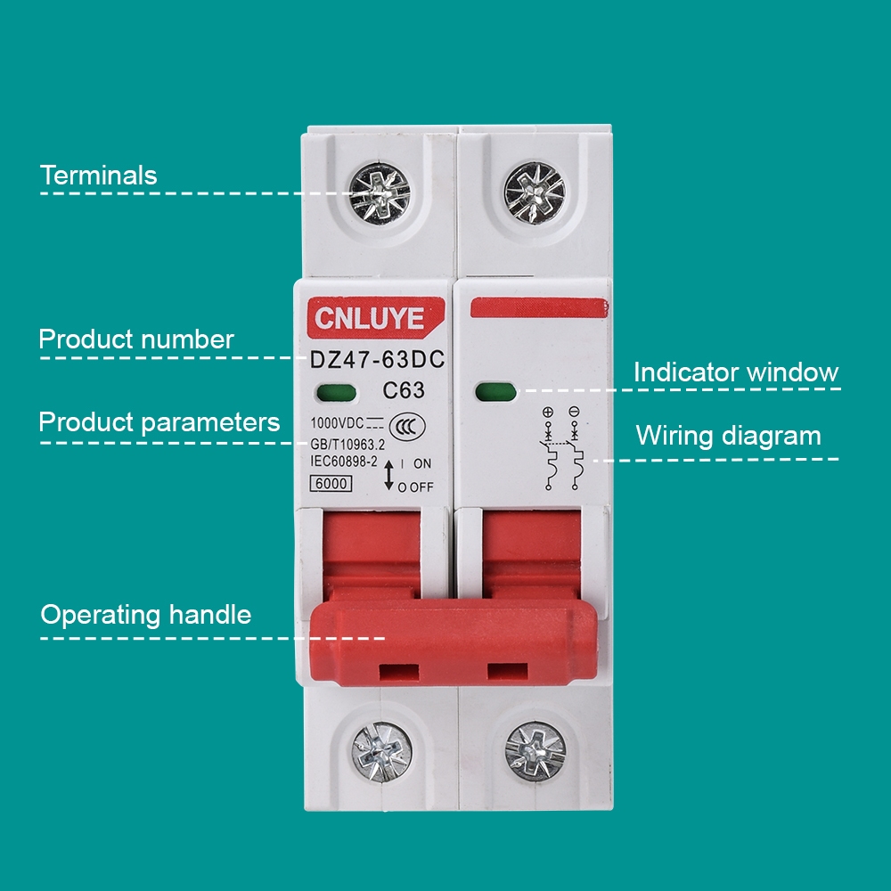 2P DC 1000V Solar Mini Circuit Breaker Battery Switch 16A 32A 40A 63A MCB for Photovoltaic PV System