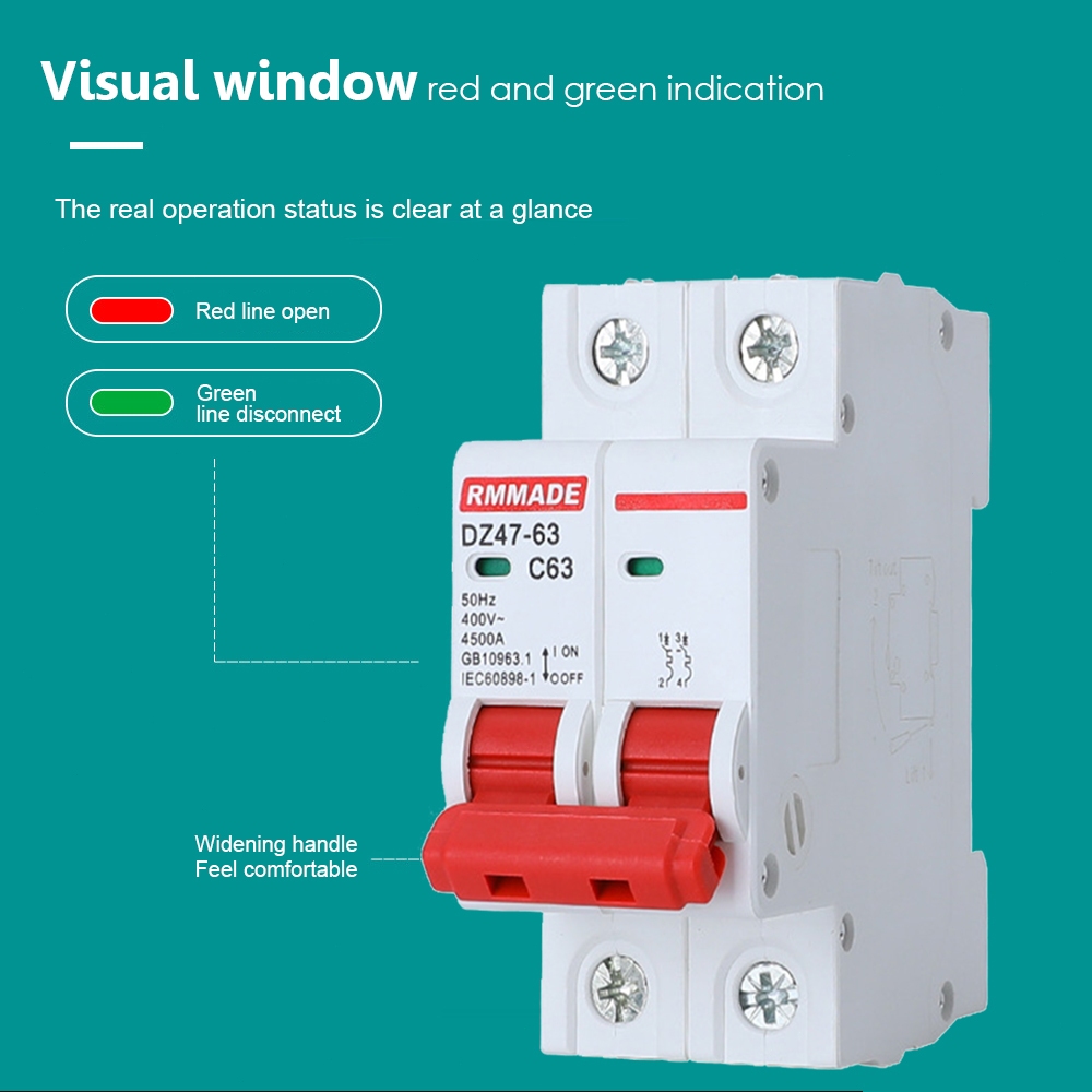 2P Mini Circuit breaker Air Switch DC 1000V Battery Switch MCB 10A~63A Overload Short Circuit Protec