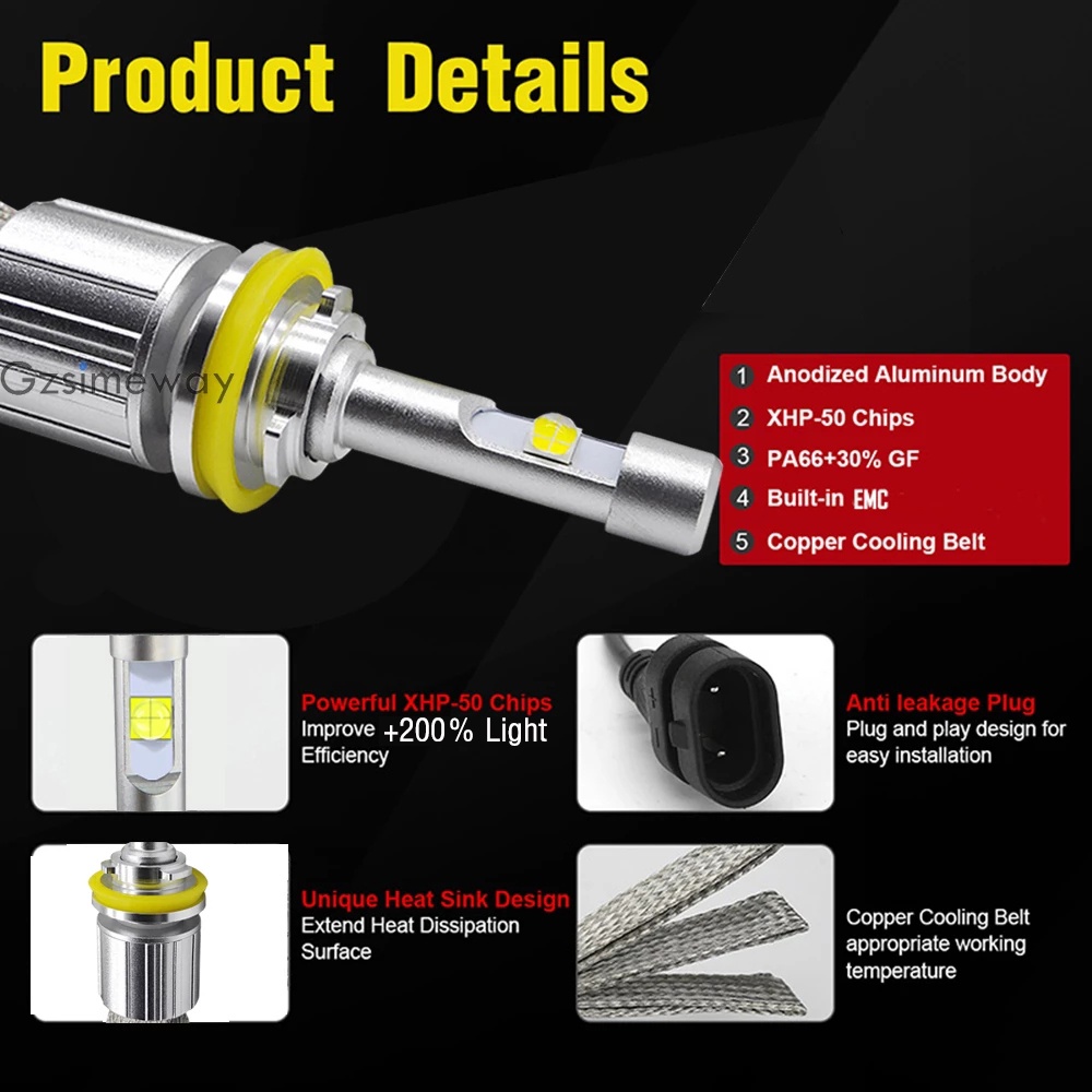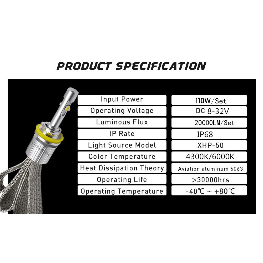 2PCS 20000LM H7 Led Bulb H4 H11 Car Headlight H1 H3 9012 HB3 9005 Hb4 9006 881 D2H Fanless LED Headlamp 6000K 4300K XHP50 Auto Fog Lamps