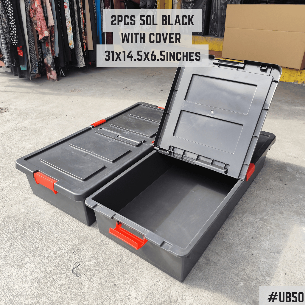 2PCS 40L Underbed Storage Box with Wheels – Multipurpose Organizer / Low Profile Litter Box – BLACK