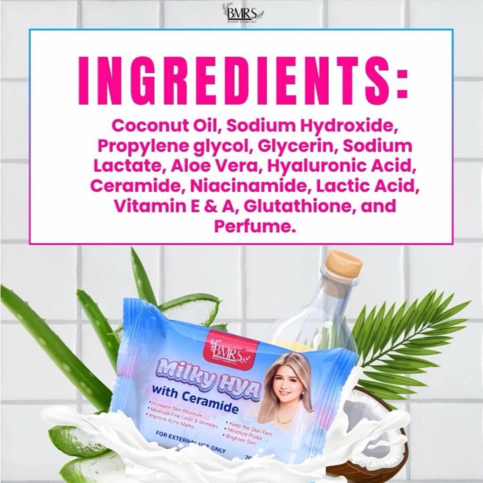 2PCS BMRS MILKY HYA SOAP WITH CERAMIDE and 6 ACTIVE INGREDIENT 70G