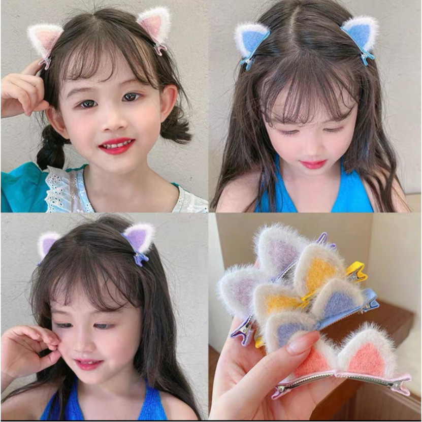 2PCS/Children's Hair Clips Cat Ears Plush Small Hair Clips Hair Accessories