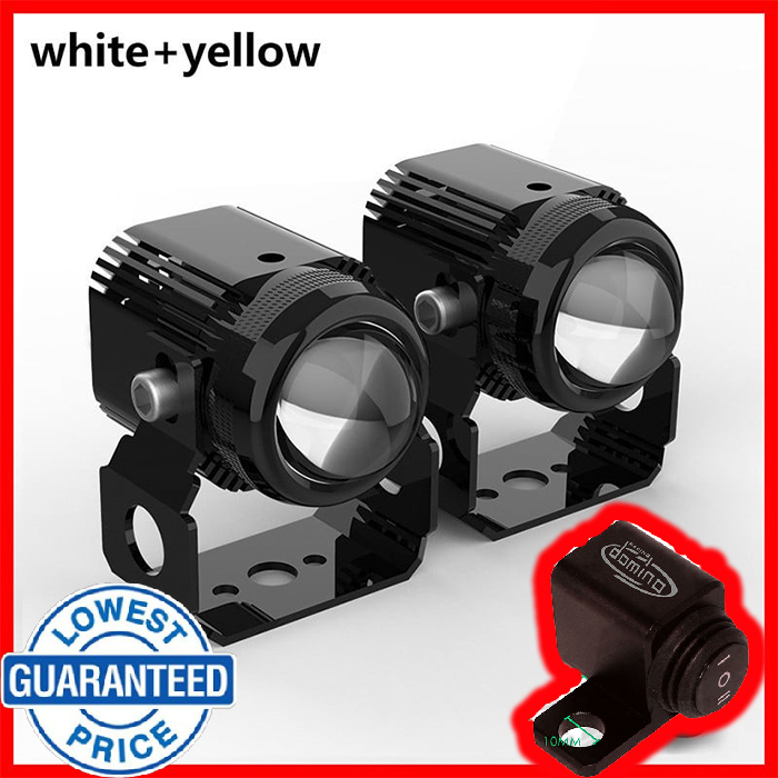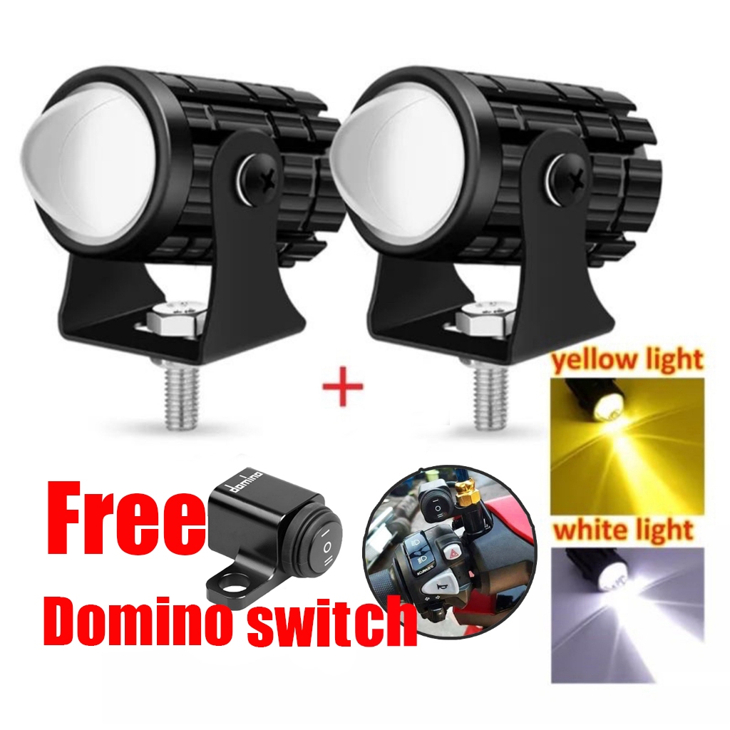 2PCS Color Mini Motorcycle Driving Lights White+Yellow Pair with Domino Switch Motor Spotlight