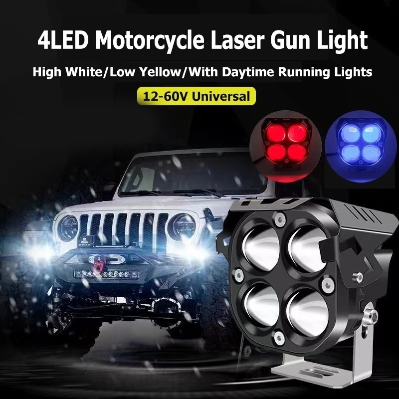 2PCS D2-1 Laser Gun 80W Long-Range LED MDL Mini Driving Light White&Yellow&Red Auxiliary Light