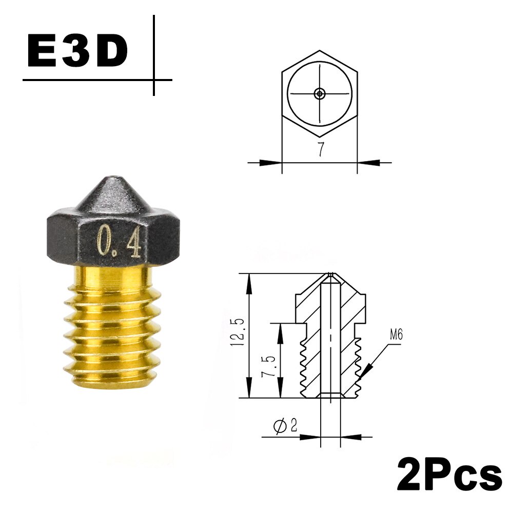 2PCS MK8/E3D/Volcano Brass PTFE Nozzle Coating Non Stick Filament 0.2/0.3/0.4/0.6/0.8/1.0mm For 3D Printer Ender 3 envio gratis