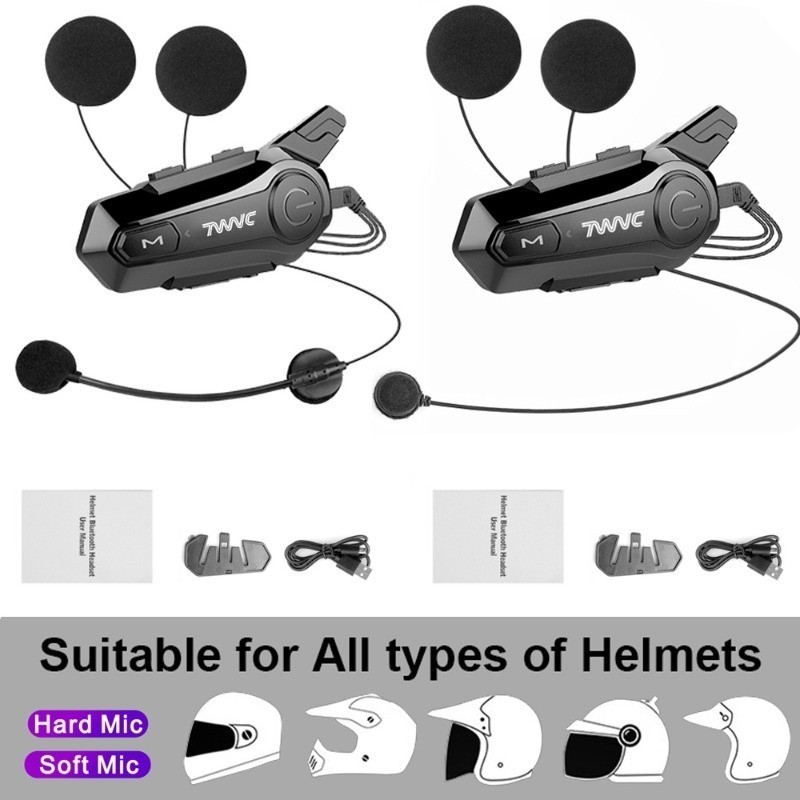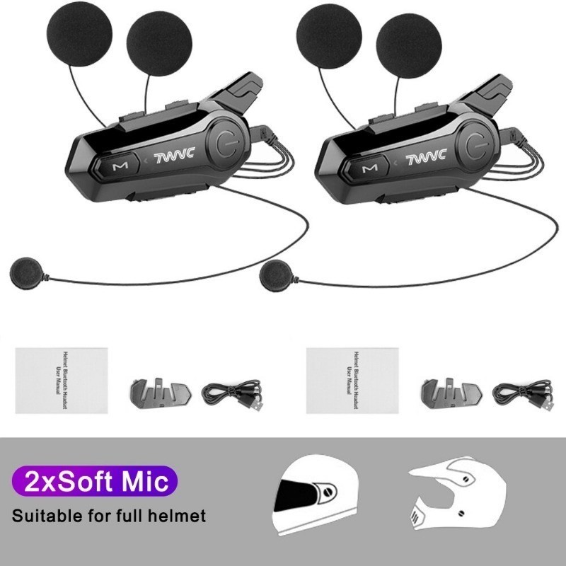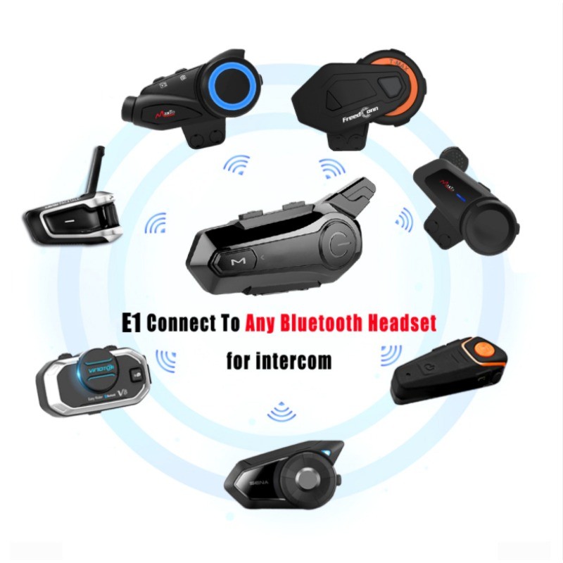 2PCS Motorcycle Bluetooth Motorcycle Helmet Intercom Headset E1 Wireless 5.0 for 2 Rider 1000M Intercomunicador IPX6 Waterproof