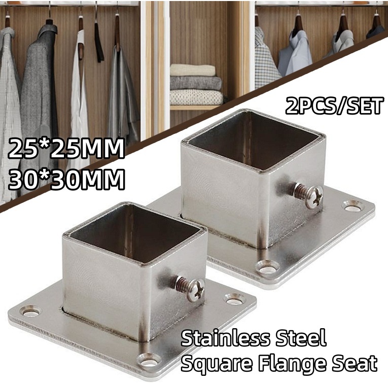 2PCS/SET Square Post Flange Base Stainless Steel Square Tube Flange Fixed Base Square Flange Base