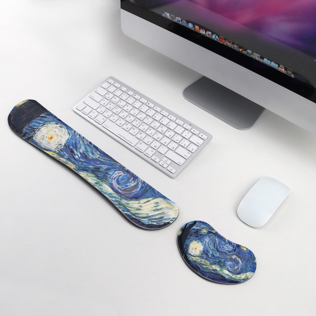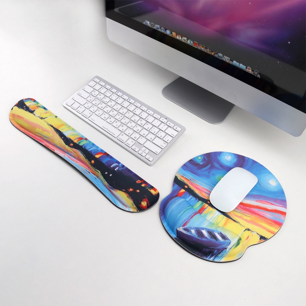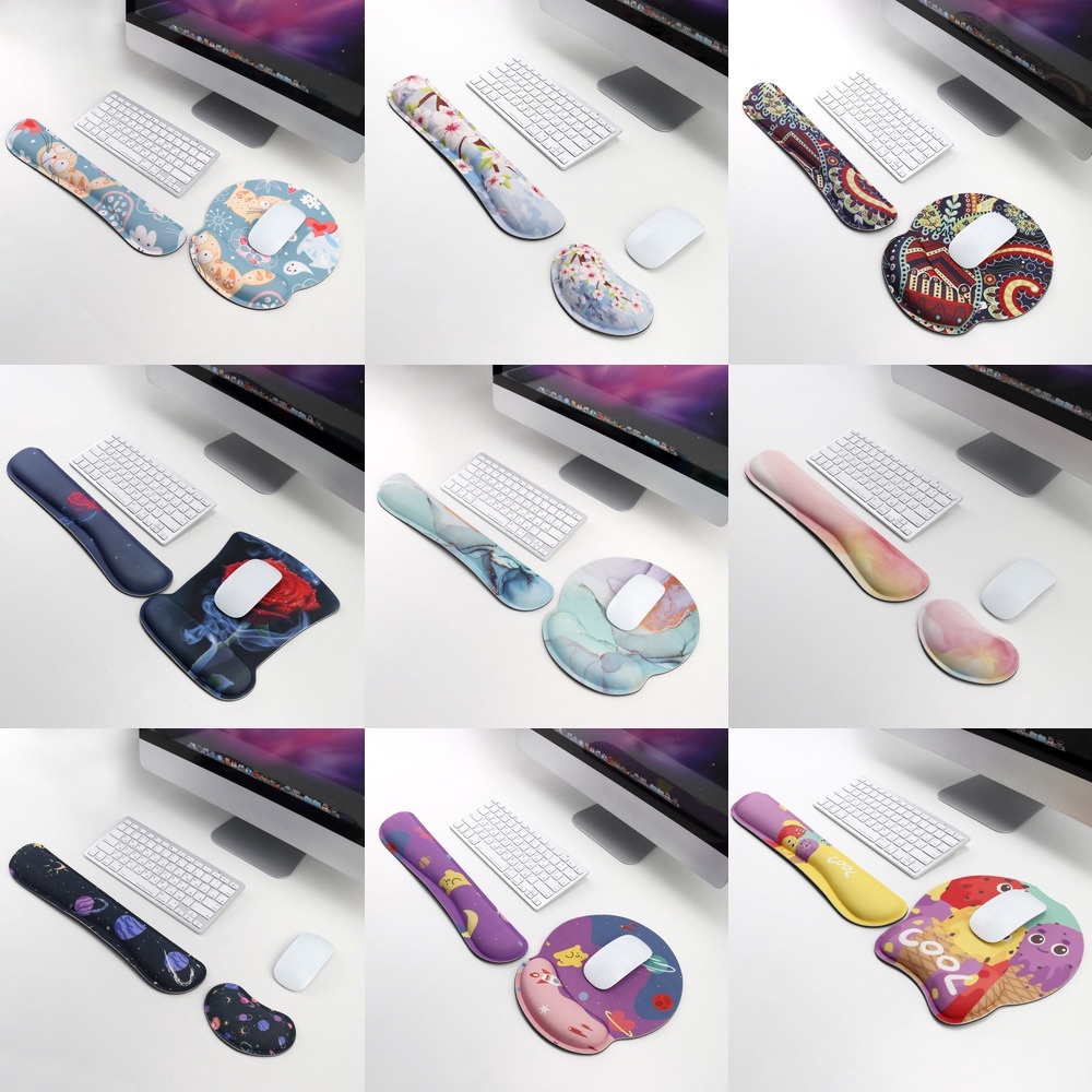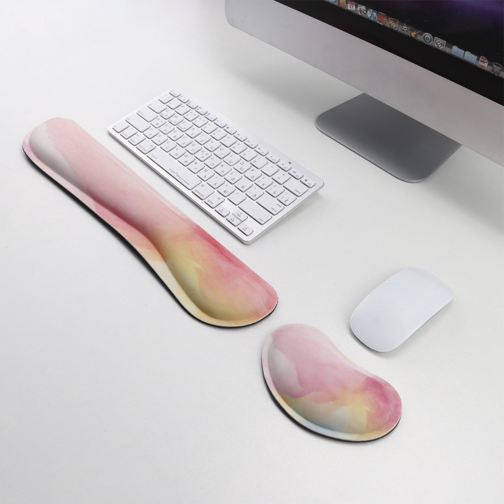 2PCS/Set Universal Ergonomic Marble Wrist Rest Mouse Pad with Wrist Rest Hand Support Wrist Protector Silicone Memory Foam Gel Non-slip Pad Mat keyboard Mat Set