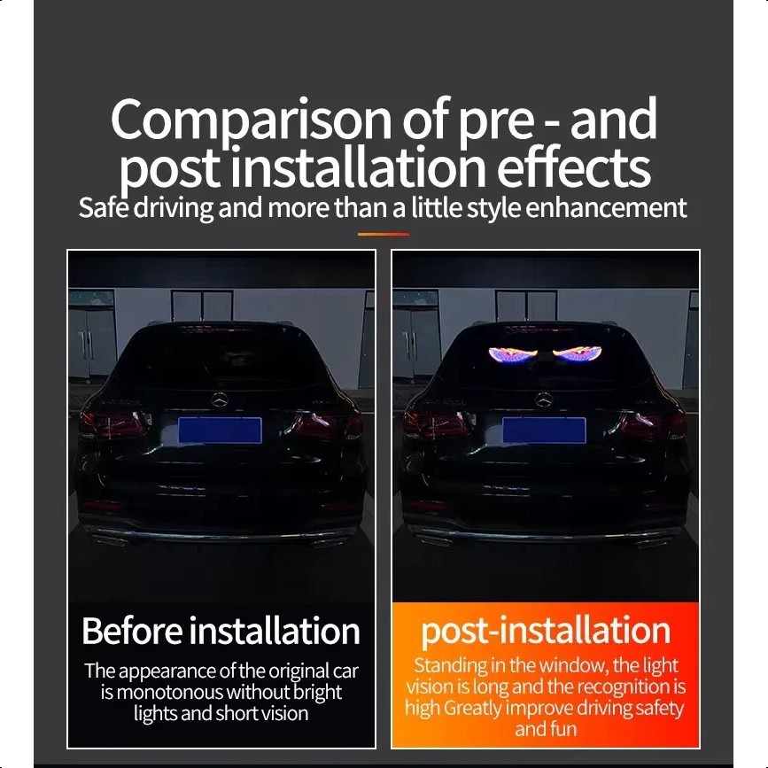 2PCS USB LED Devil Eye Dynamic Big Devil Eyes Light for Cars, Programmable Window Screen LED Display