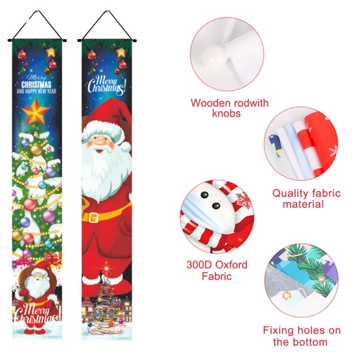 2PCs Merry Christmas Banner 2024 Christmas Decor Christmas Curtain Couplet