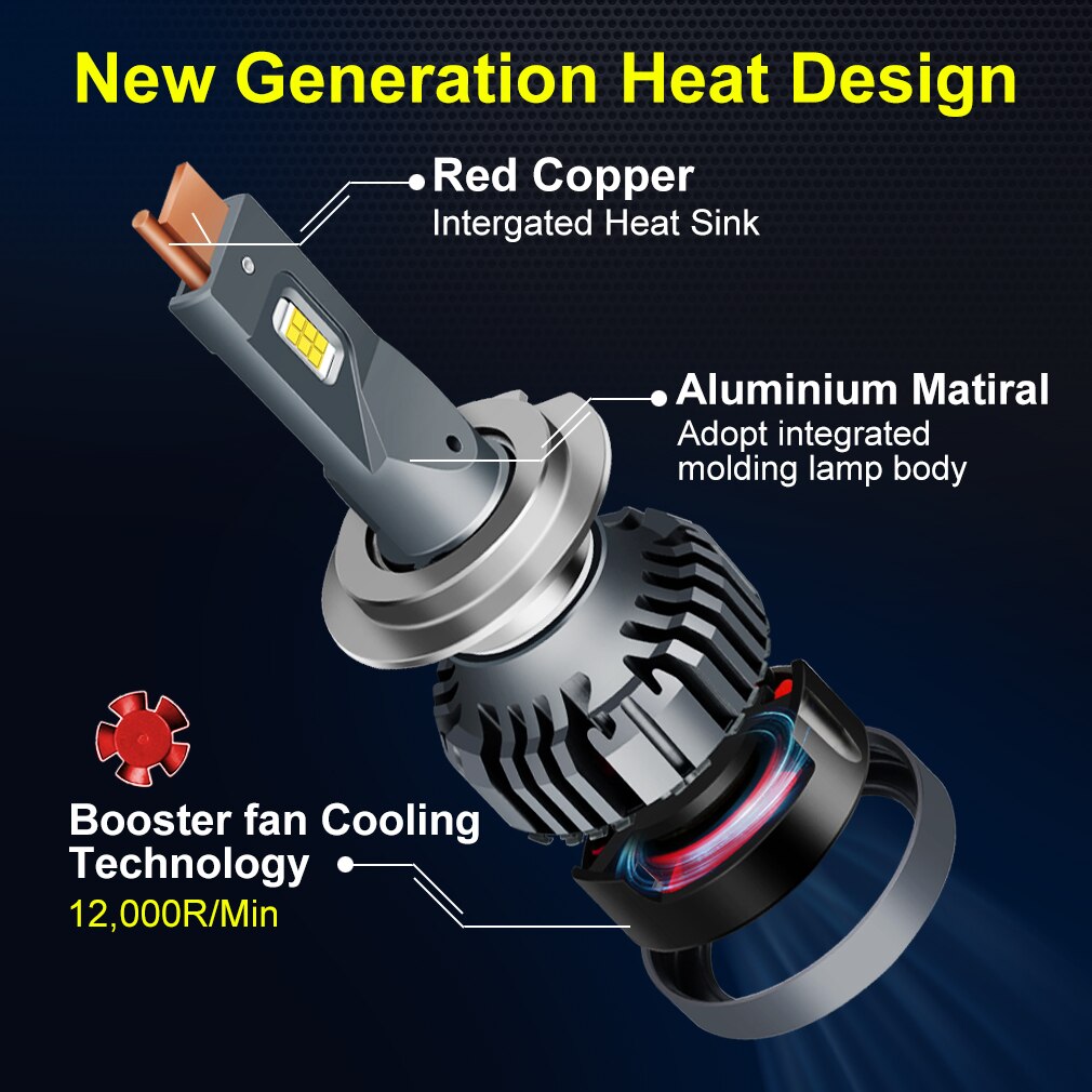 2Pcs 100W Car LED Headlight H4 H1 H3 H7 H11 9005 HB3 9006 HB4 9012 HIR2,Pure White,Canbus Inside