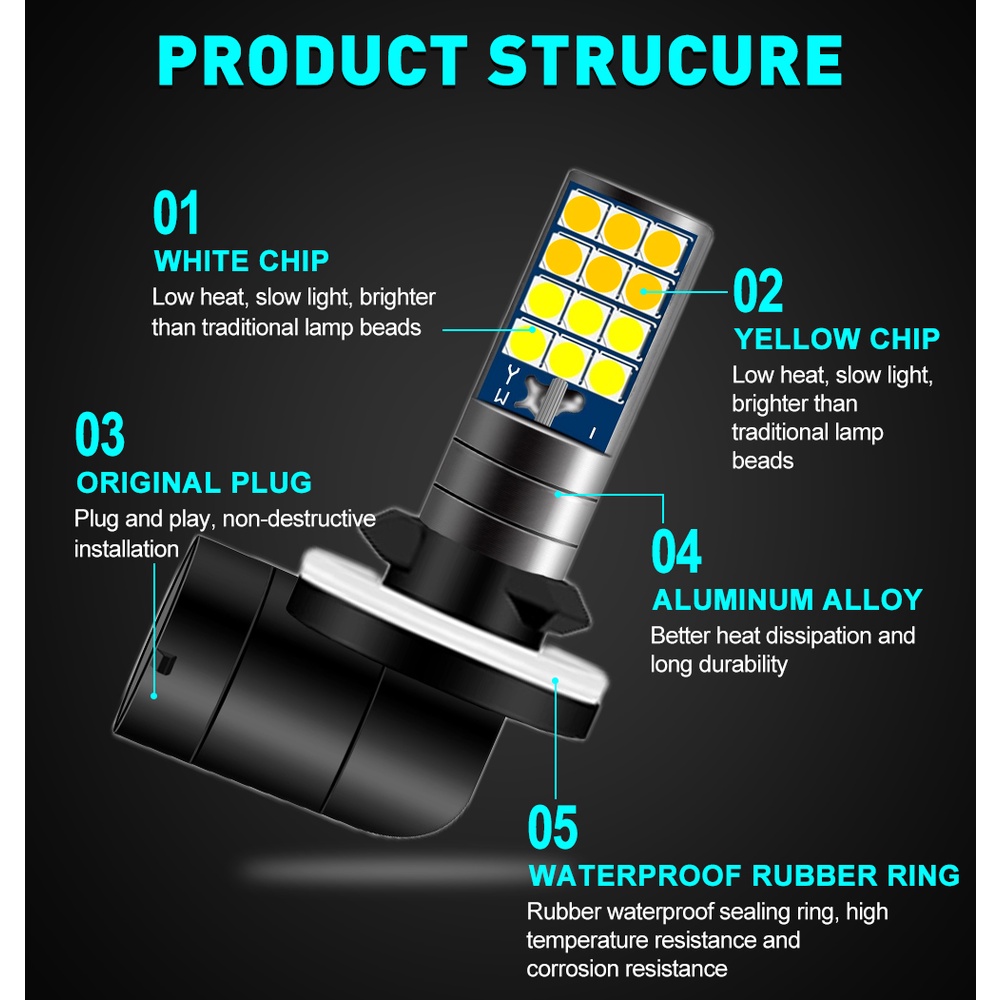 2Pcs 24 Led Dual Color Car Led Fog Lamp H27 Led Bulb 881 880 Led Fog Light