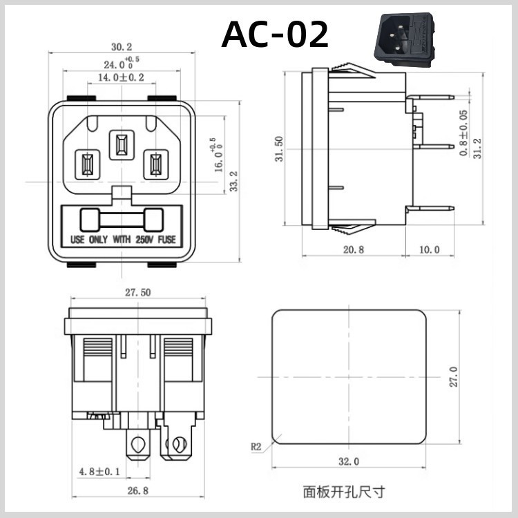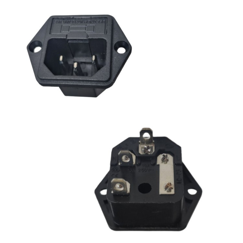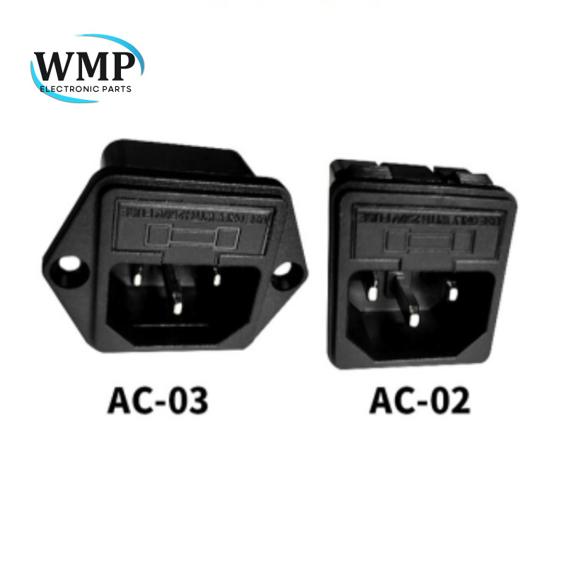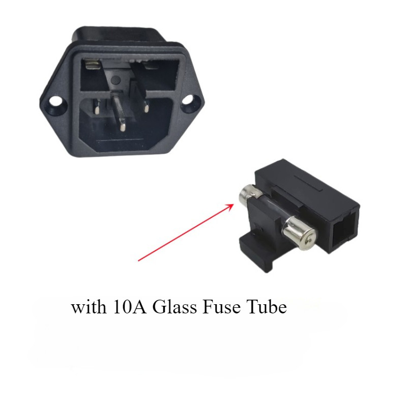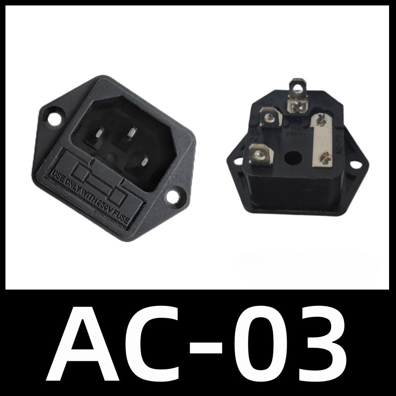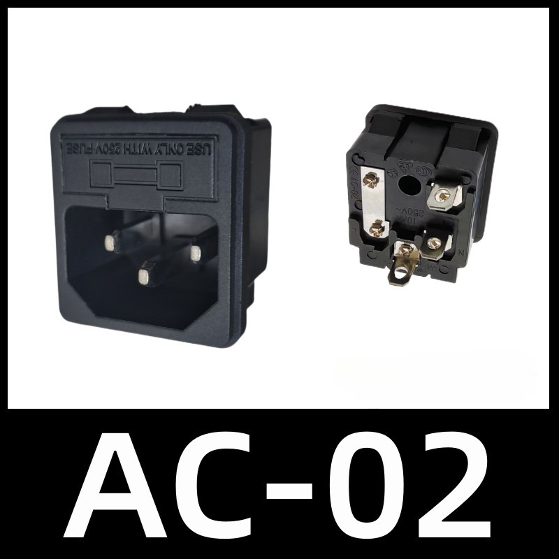 2Pcs AC Power Socket with Fuse AC-02 AC-03 250V10A Black 3Pins Terminal Male Plug Connector with Fuse Holder