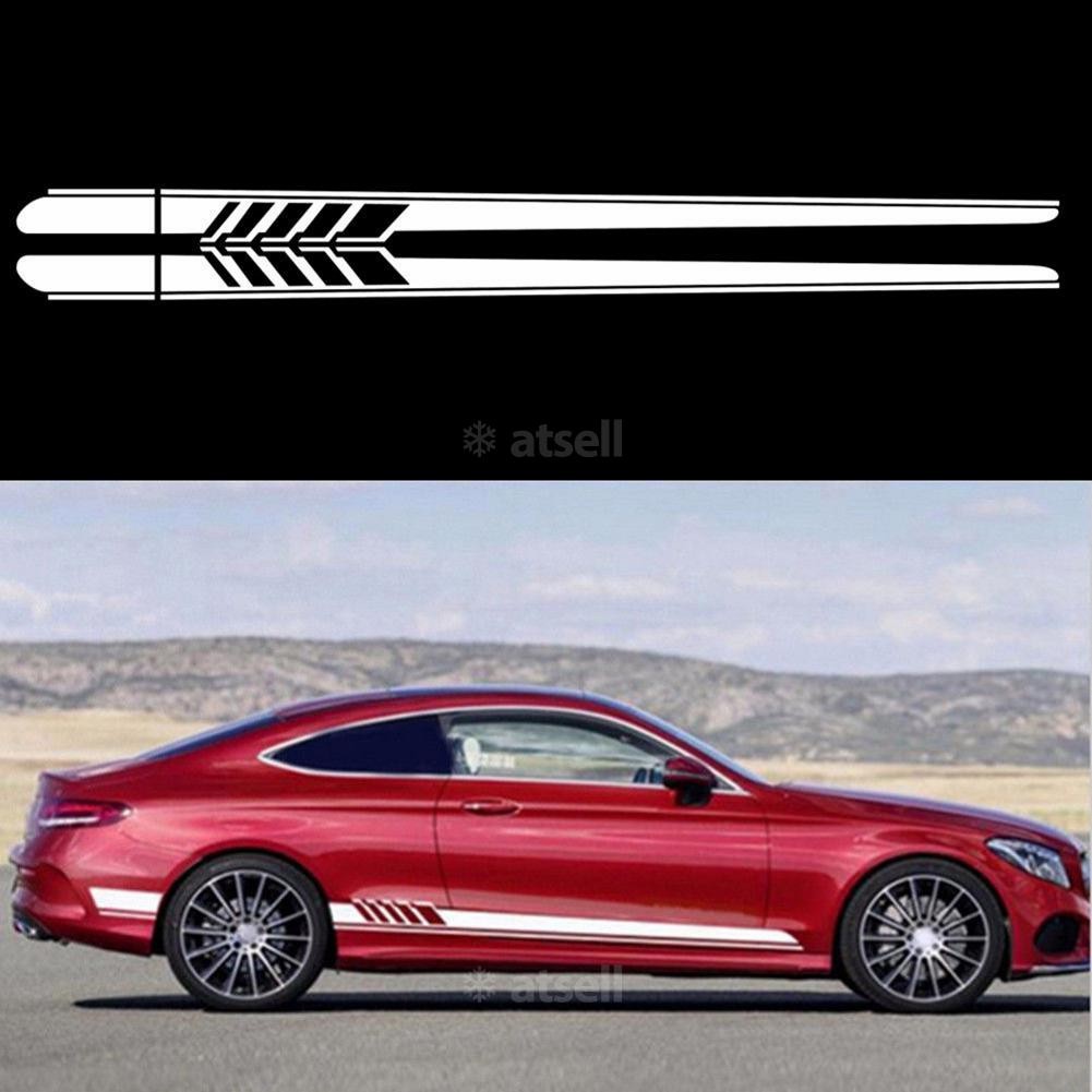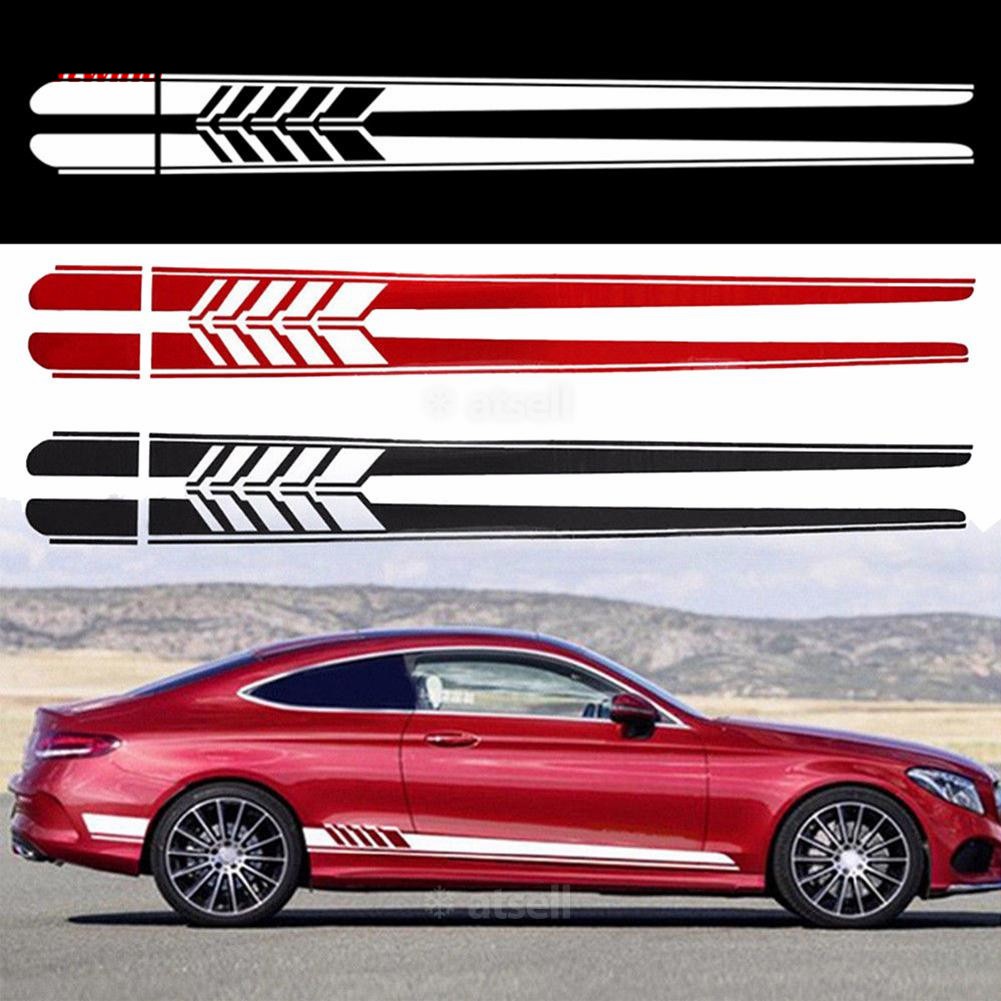 2Pcs Car Side Body Vinyl Decal Sticker Racing Long Stripe Decals Graphics
