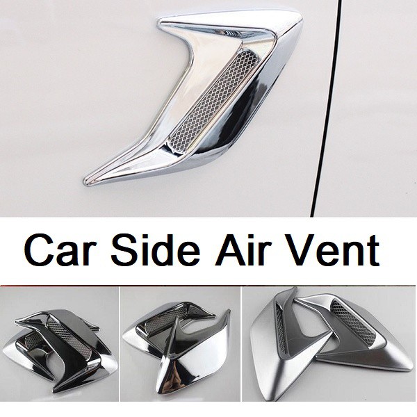 2Pcs DIY Car Auto Decorative Side Vent Air Flow Guard Intake Universal Silver, Black