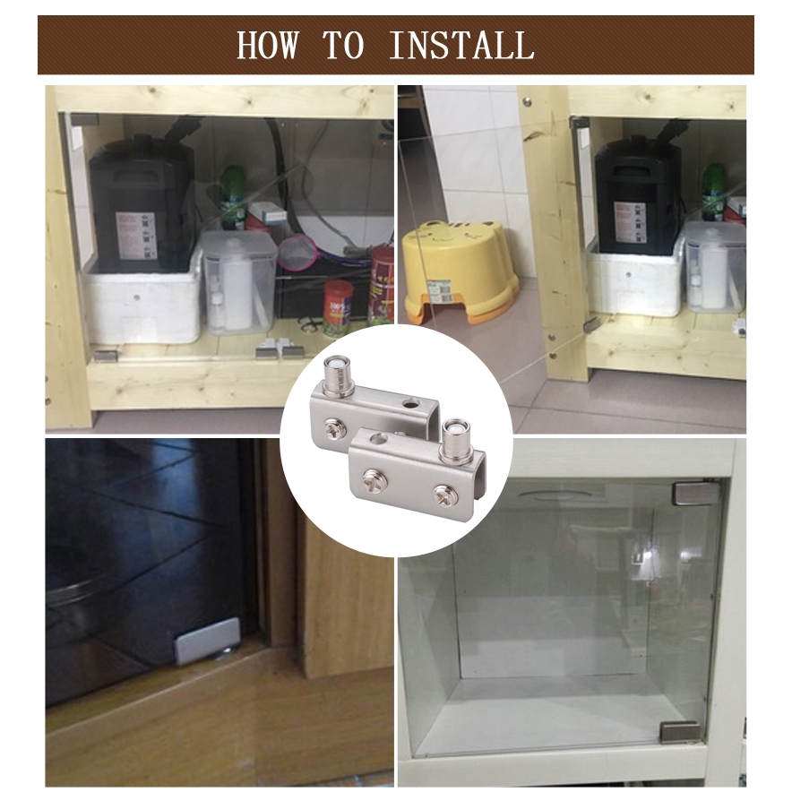2Pcs Glass Pivot Hinge Rotation Axis Stainless Steel Wine Cabinet Door Rotating Hinges Clamp Clip Shaft Hidden Hinge
