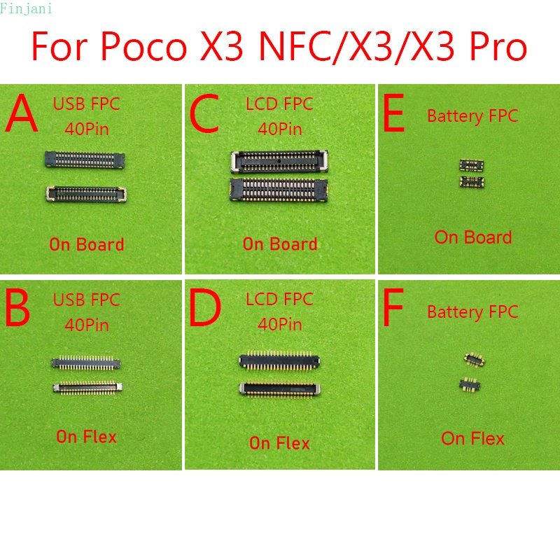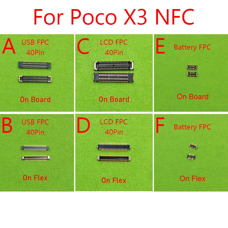 2Pcs LCD Display Touch Screen FPC Connector On Motherboard For Xiaomi POCO Pocophone X3 NFC/X3/X3 Pro Battery Plug On Flex 40pin
