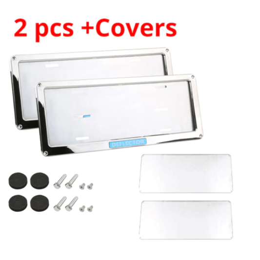 2Pcs License Plate Frame with Cover Chrome Stainless Universal Car License Plate Holder Frames