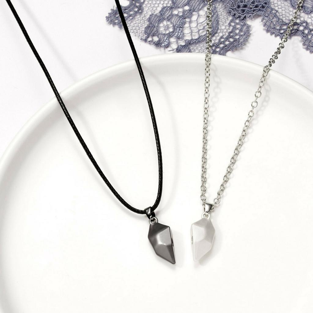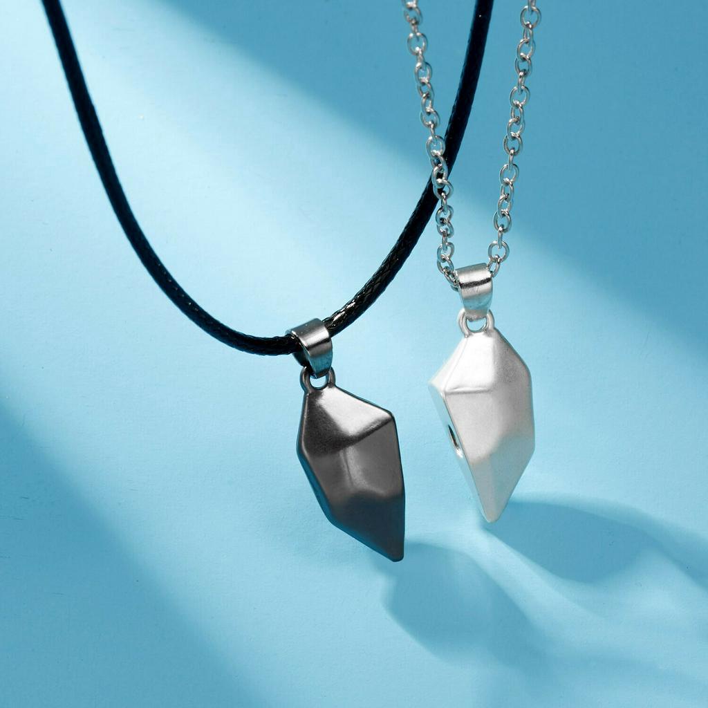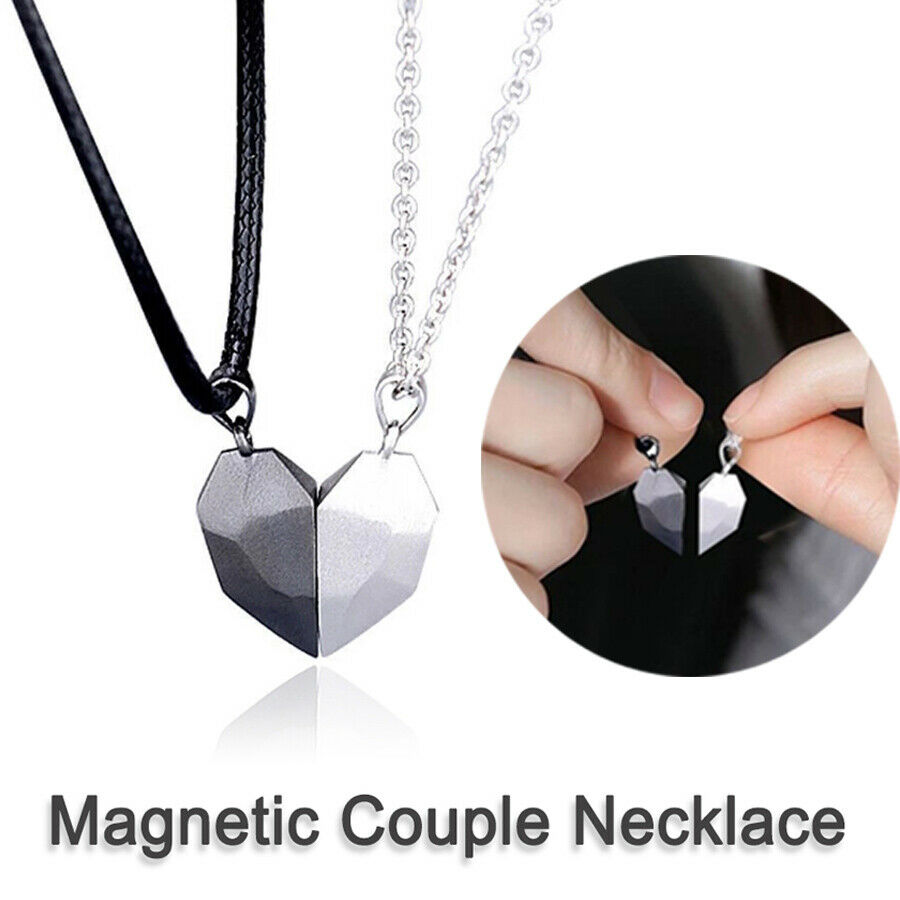 2Pcs Magnetic Couple Heart Pendant Necklace Lovers Women Men Chain Jewelry Valentine's Day Gifts Girlfriend BoyFriend