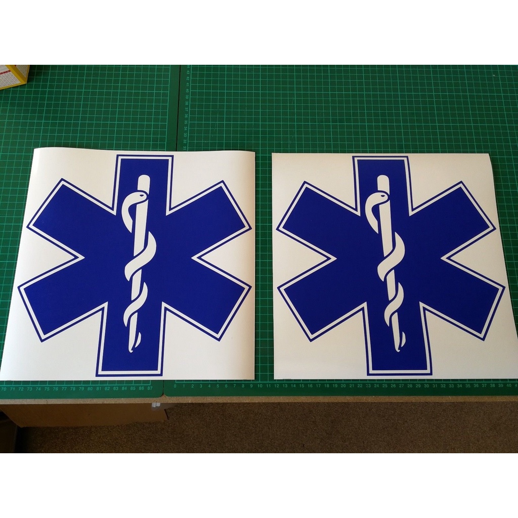 2Pcs/Pair Star Of Life Ambulance Sign Paramedic First responder 300mm x 2
