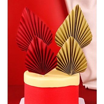 2Pcs Paper Folding Fan Gold Leaf Cake Toppers for Birthday Party Cake Decoration Supplies SD