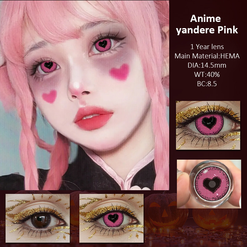 2Pcs Pink Contact LensHalloween Anime Character Cosplay Mesh All Soft 14.5MM Yearly Beauty Colorful Contacts Lens