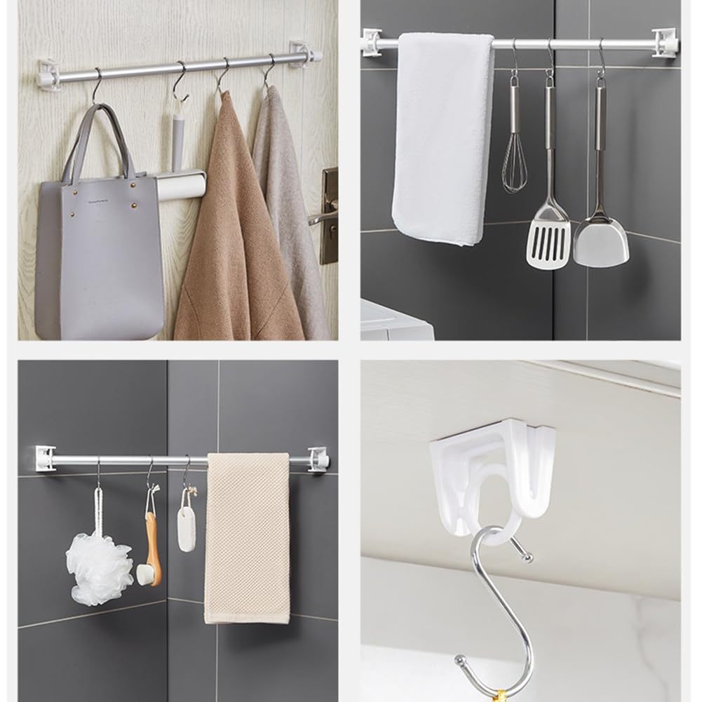 2Pcs Rotating Curtain Rod Holder Clamp Hooks Self Adhesive Clothes Rail Bracket 360 Rotation Hooks