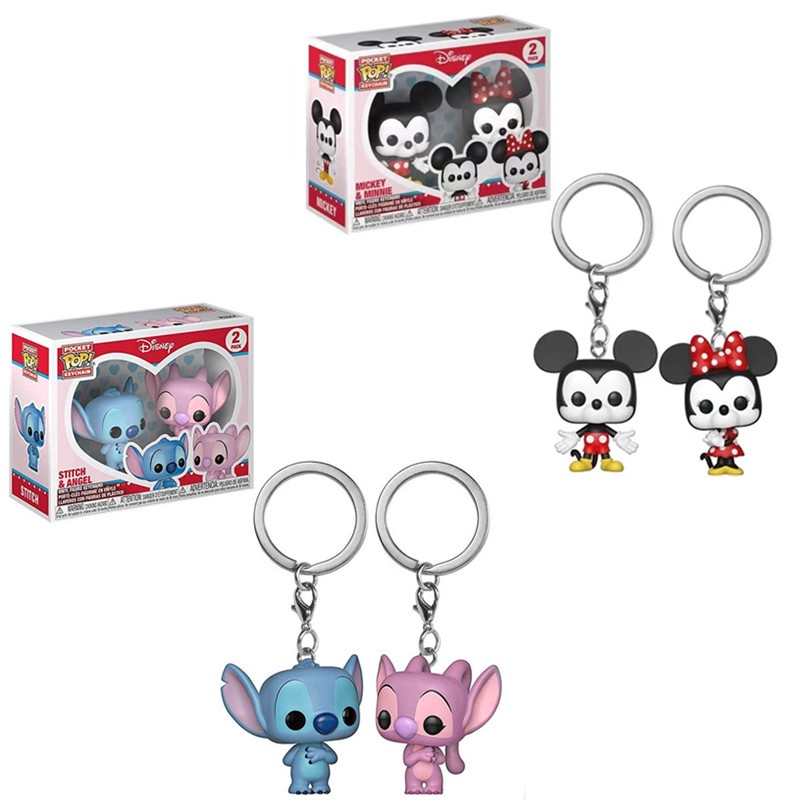 2Pcs/set Funko POP Disney Mickey Minnie Keychain PVC Lilo & Stitch Action Figure Cartoon Doll Collection Gift