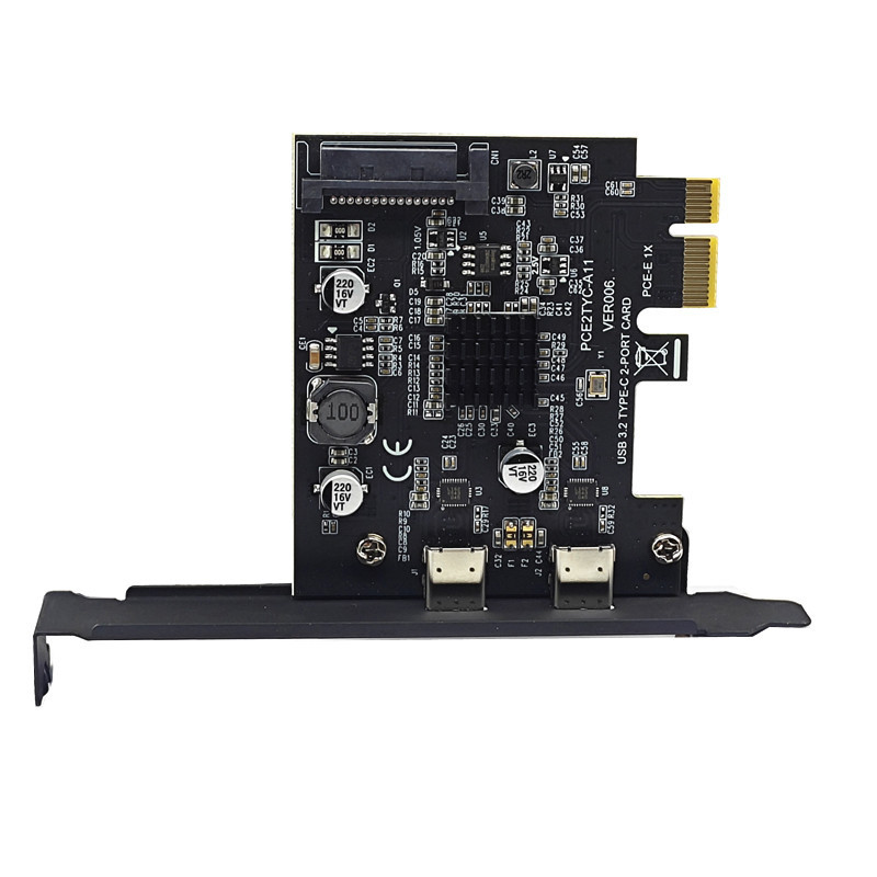 2Port TYPE-C PCIE Card PCI Express 3.0 X1 to Dual USB-C Expansion Card SATA Power USB3.2 Gen2 10Gbps ASM3142 Chip for Desktop PC