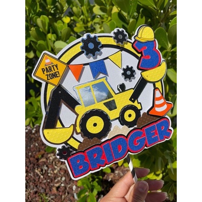 2d backhoe heavy machinery cake topper personalized