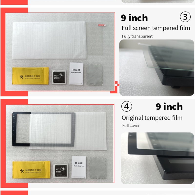 2din Android Car Stereo Screen Protector for 10 inch 9 inch 7 inch Headunit 2.5D Clear Tempered Glass Screen Protector Film for Car Radio