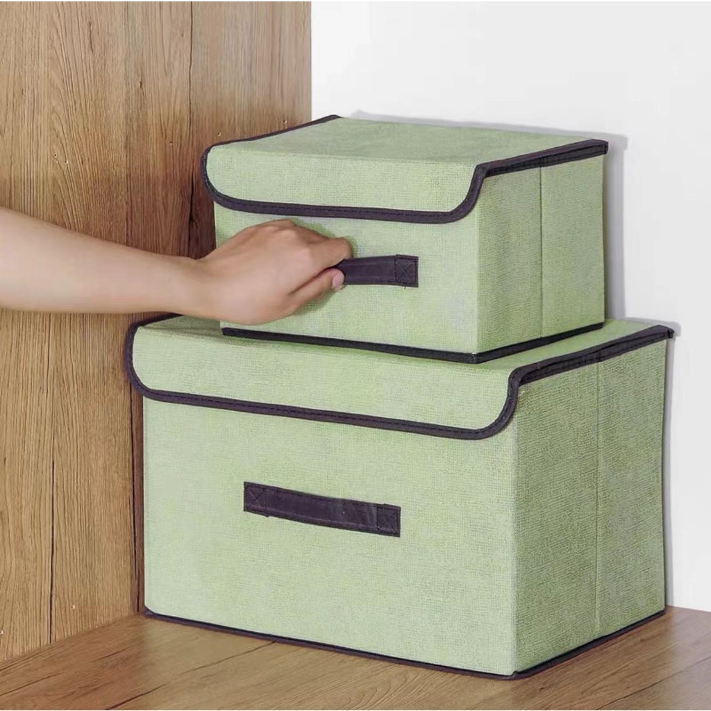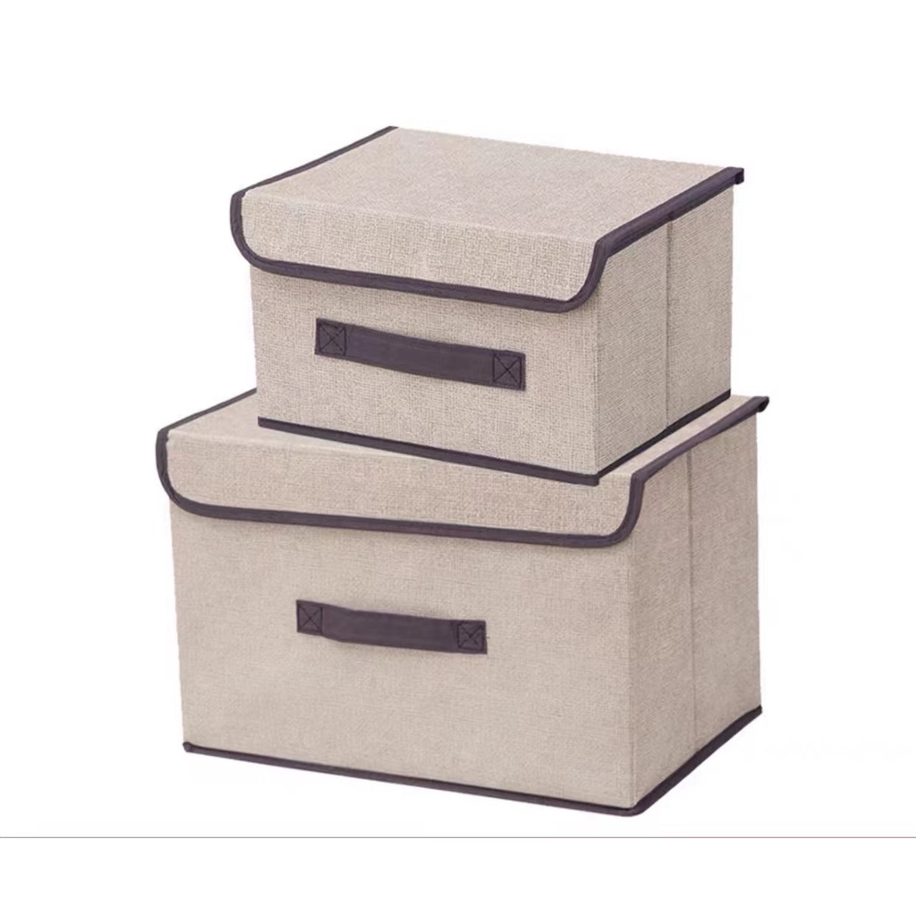 2in1 Plain Color Foldable Storage Box Organizer With Cover Set Clothes Shelf