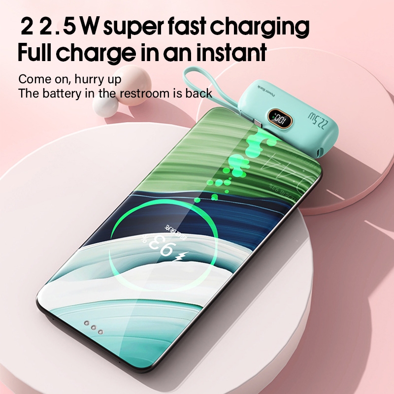 2in1 Powerbank 5000mAh Mini Fast Charging Power Bank Digital Dispaly Type-C iPh 3in1 Powerbank