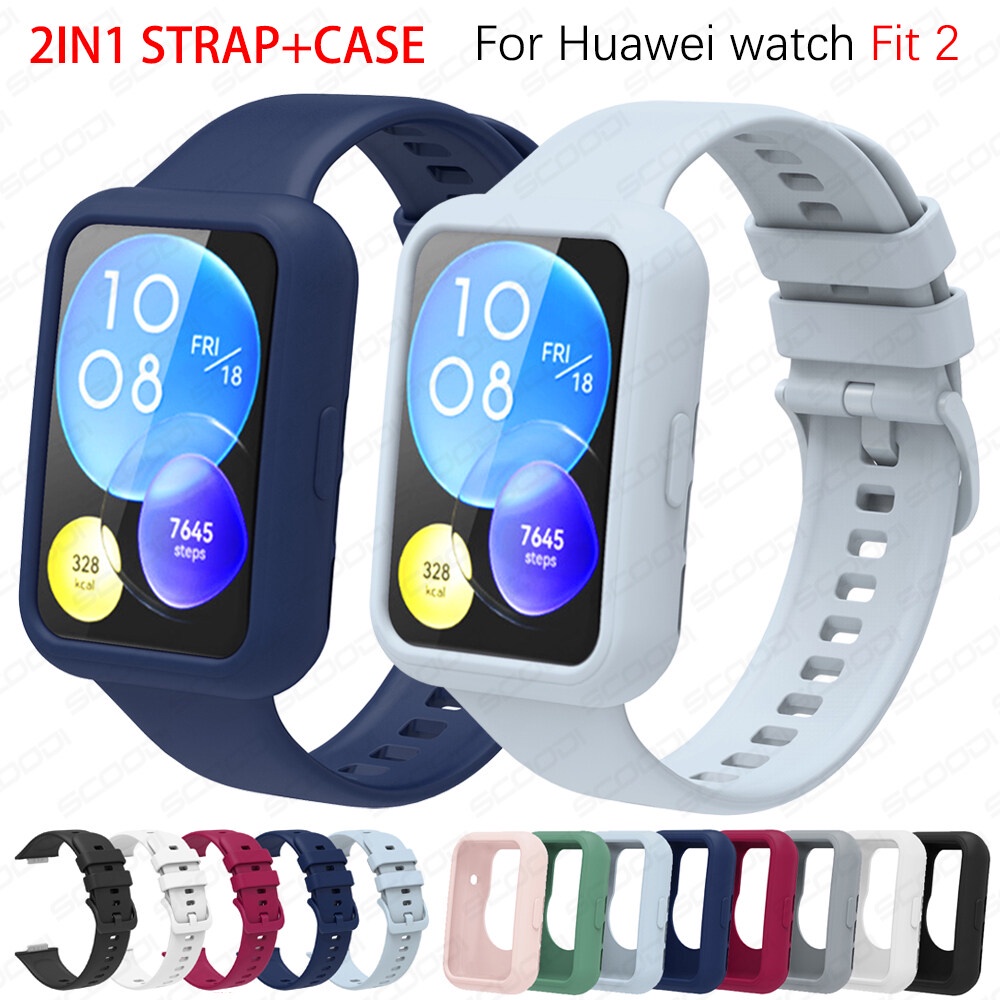 2in1 Silicone Band Strap+Soft Case Watchband for Huawei watch Fit 2 smart watch Replacement Silicone Strap cover