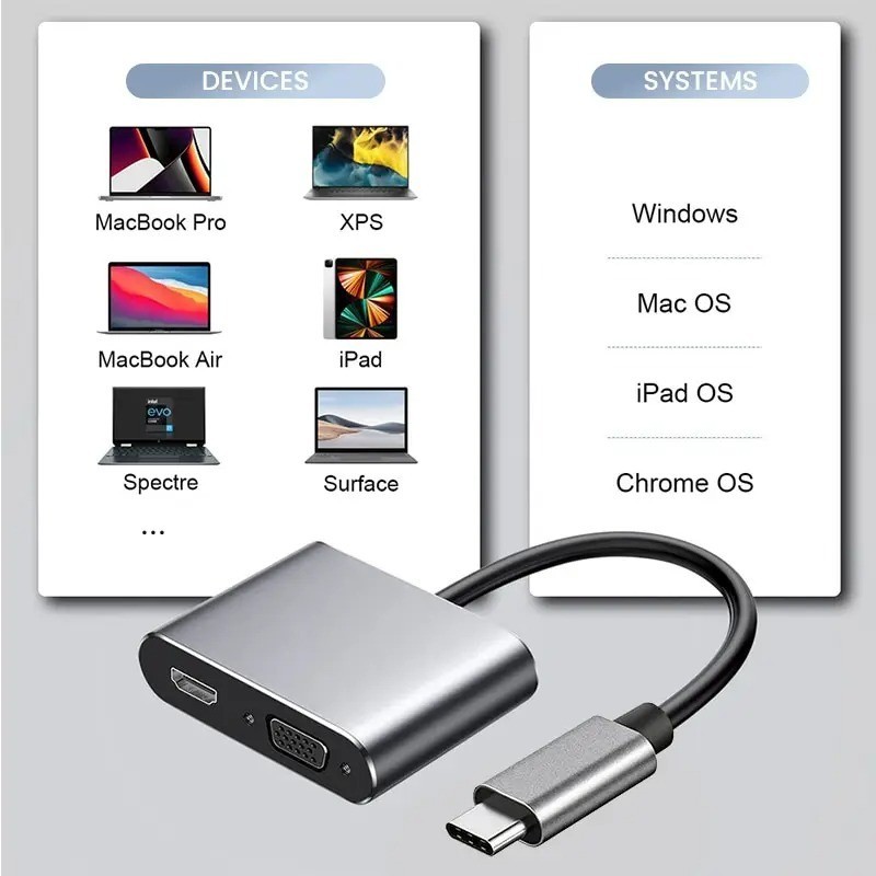 2in1 Type-C to HDMI VGA Adapter 4K USB C to VGA 1080p 60hz USBC to HDTV Converter for Laptop Mobile Phone Tablet
