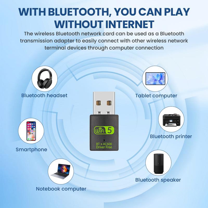 2in1 Wi-Fi + Bluetooth Dongle USB Adapter Wireless Network 2.4G/5G Dual Band Receiver