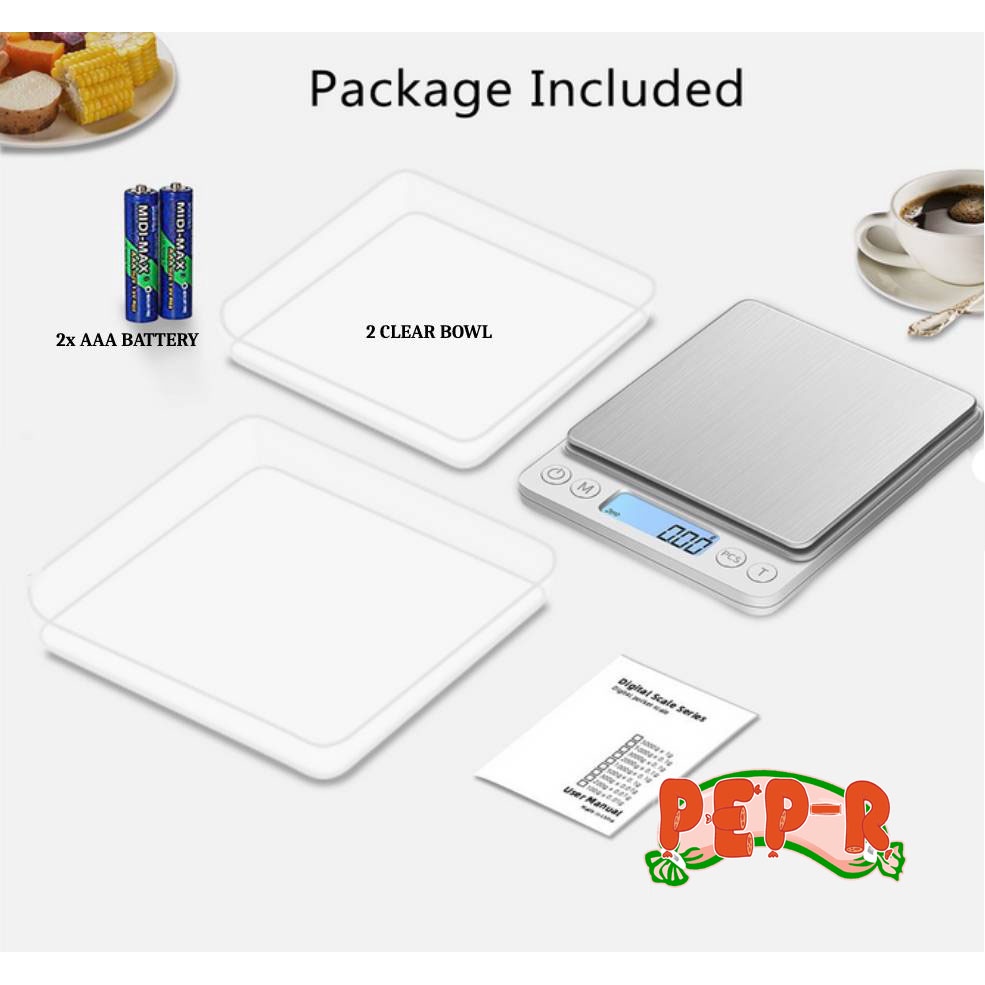 2kg/0.1g Food Weighing Scale Digital Kitchen Scale Weight Grams Cooking