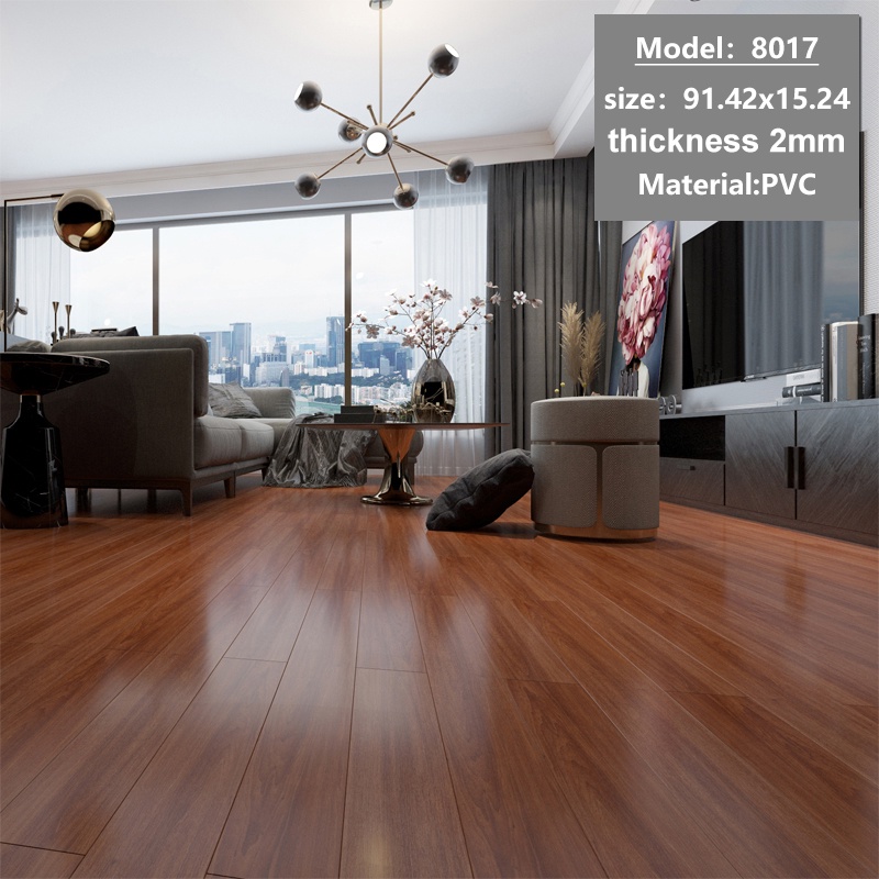 2mm thick PVC wood grain floor sticker design 91X15CM vinyl floor tile self adhesive bedroom
