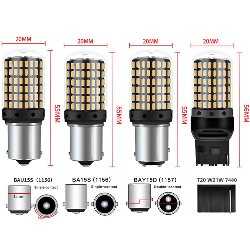 2pcs Auto Turn Signal Light Brake Lights 1156 BA15S P21W BAU15S PY21W T20 7440 W21W 1157 LED Bulbs 144 smd led CanBus No Error Lamp White Yellow Red 12V