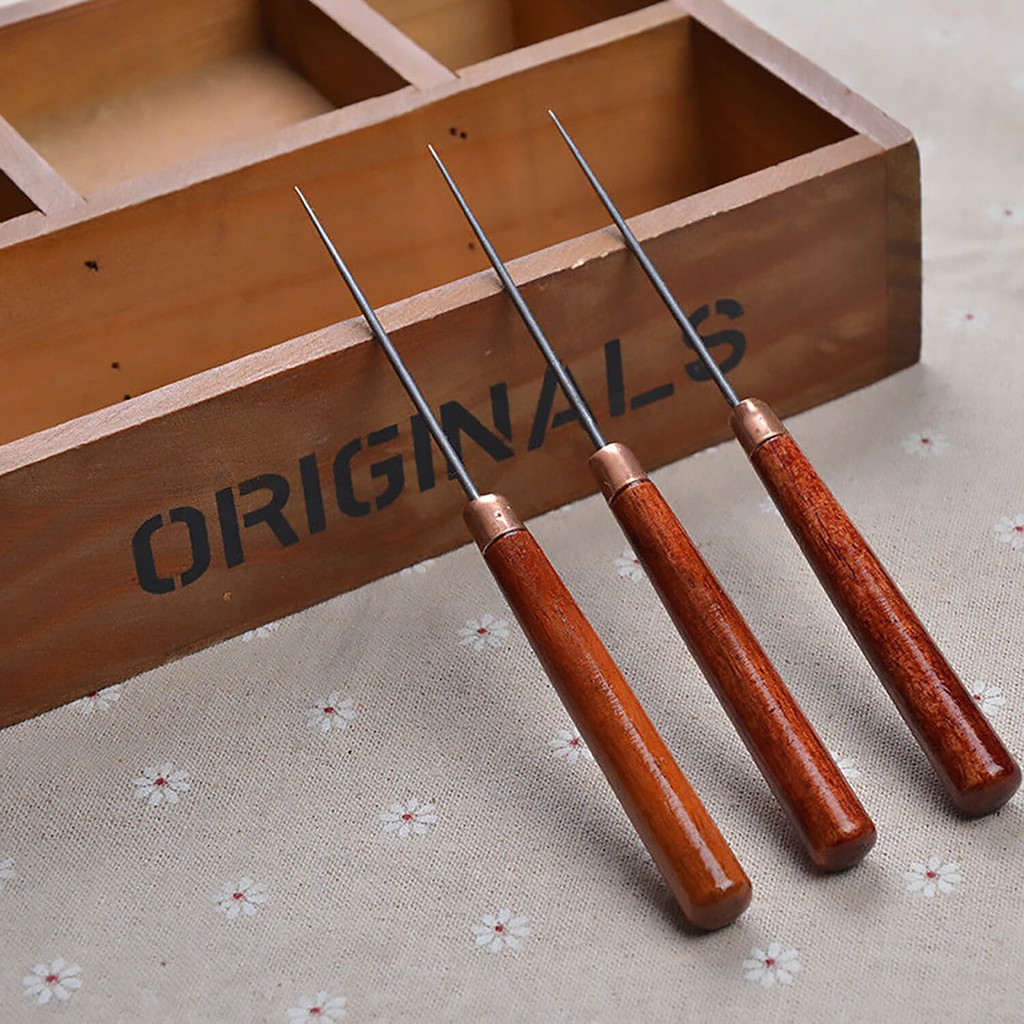 2pcs Awl with Dark Red Straight Wood Handle Beading Piercing Tools Awl for Leathercraft 16.5cm